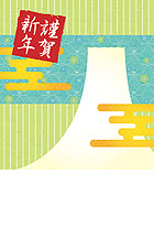 山、花柄、ストライプ柄の組み合わせや紙のような質感がポイントの年賀状