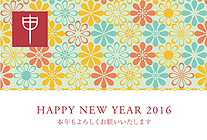 パキッとした配色が綺麗な菊柄とストライプの年賀状。