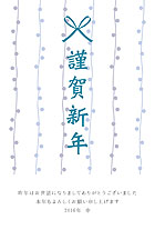 てぬぐい風のレトロ柄の中で謹賀新年の文字とリボンの黄色が目立ちます!シンプルなデザインの年賀状です。