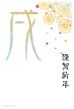 和な花柄と大きな「戌」の文字が華やかな年賀状(戌年)