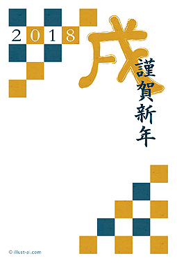 格子柄と戌の文字がデザインされた年賀状(戌年)