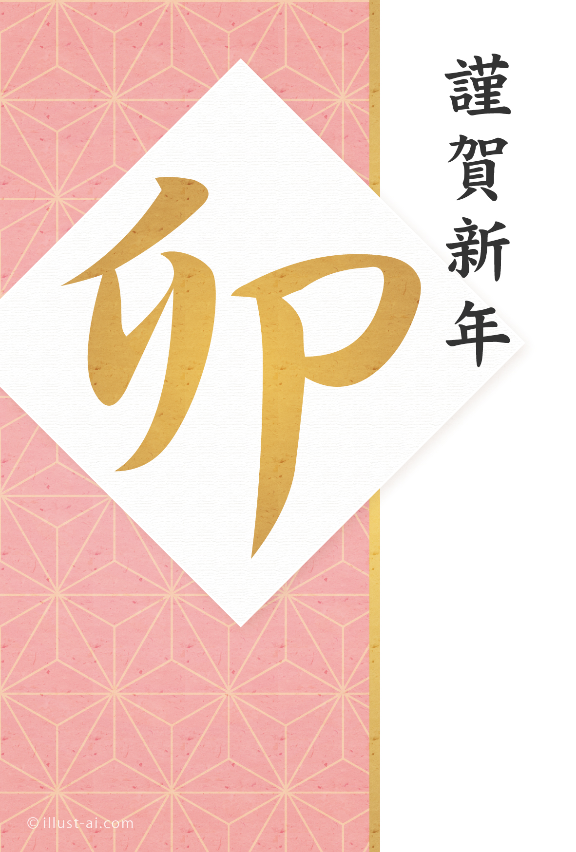 麻の葉模様とピンク色が綺麗なデザイン(卯年)