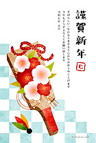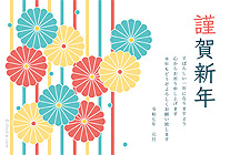 レトロカラーな菊柄とストライプがデザインされた年賀状。