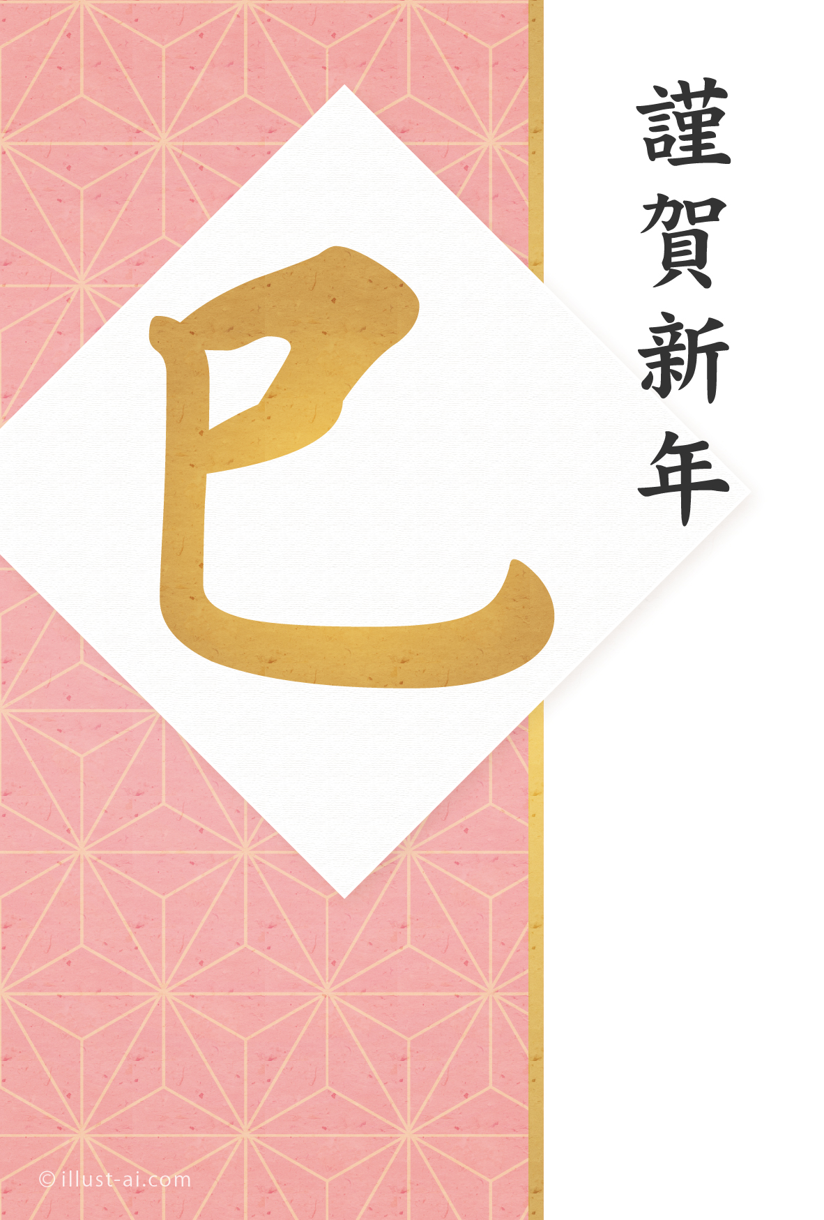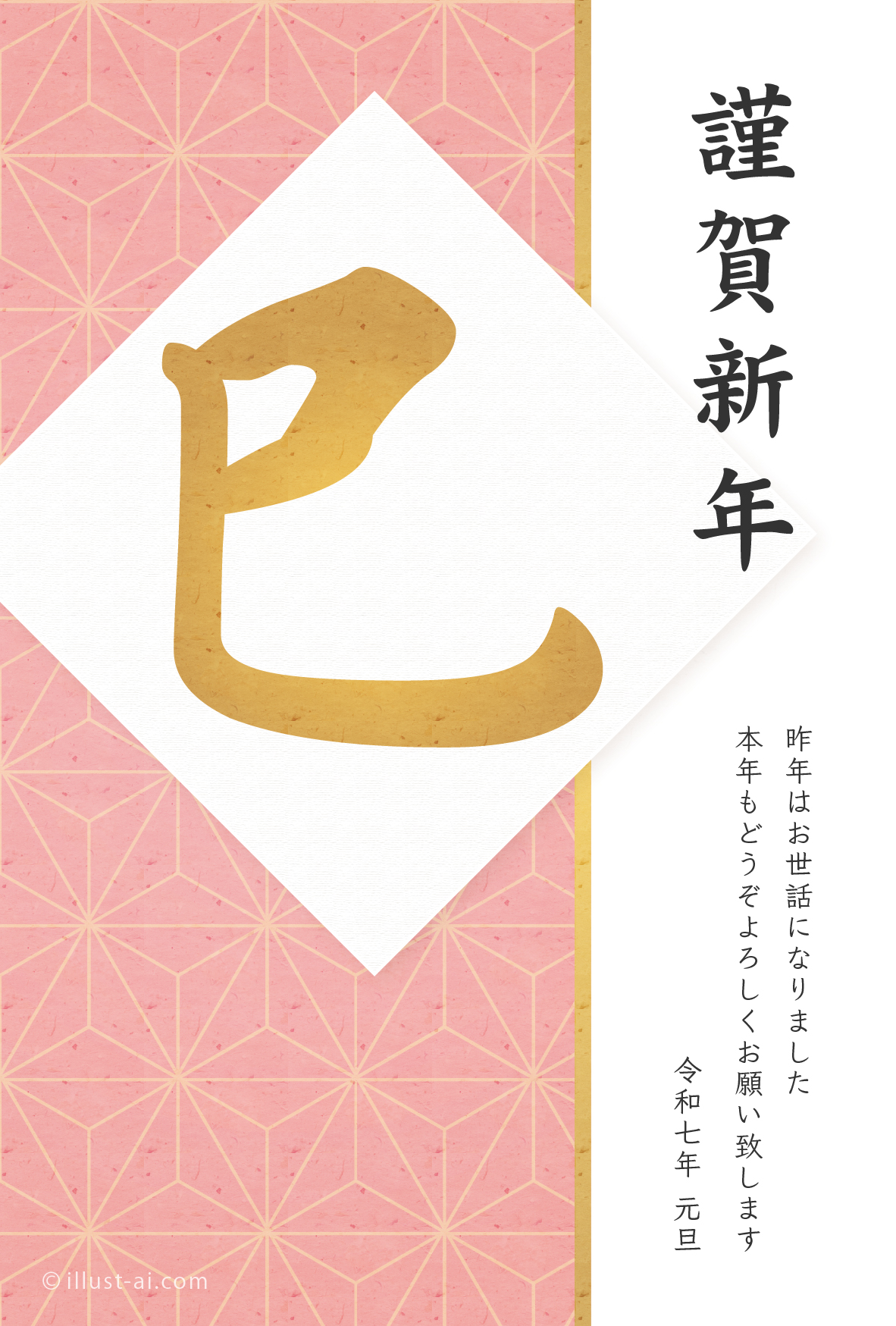 麻の葉模様とピンク色が綺麗なデザイン(巳年)
